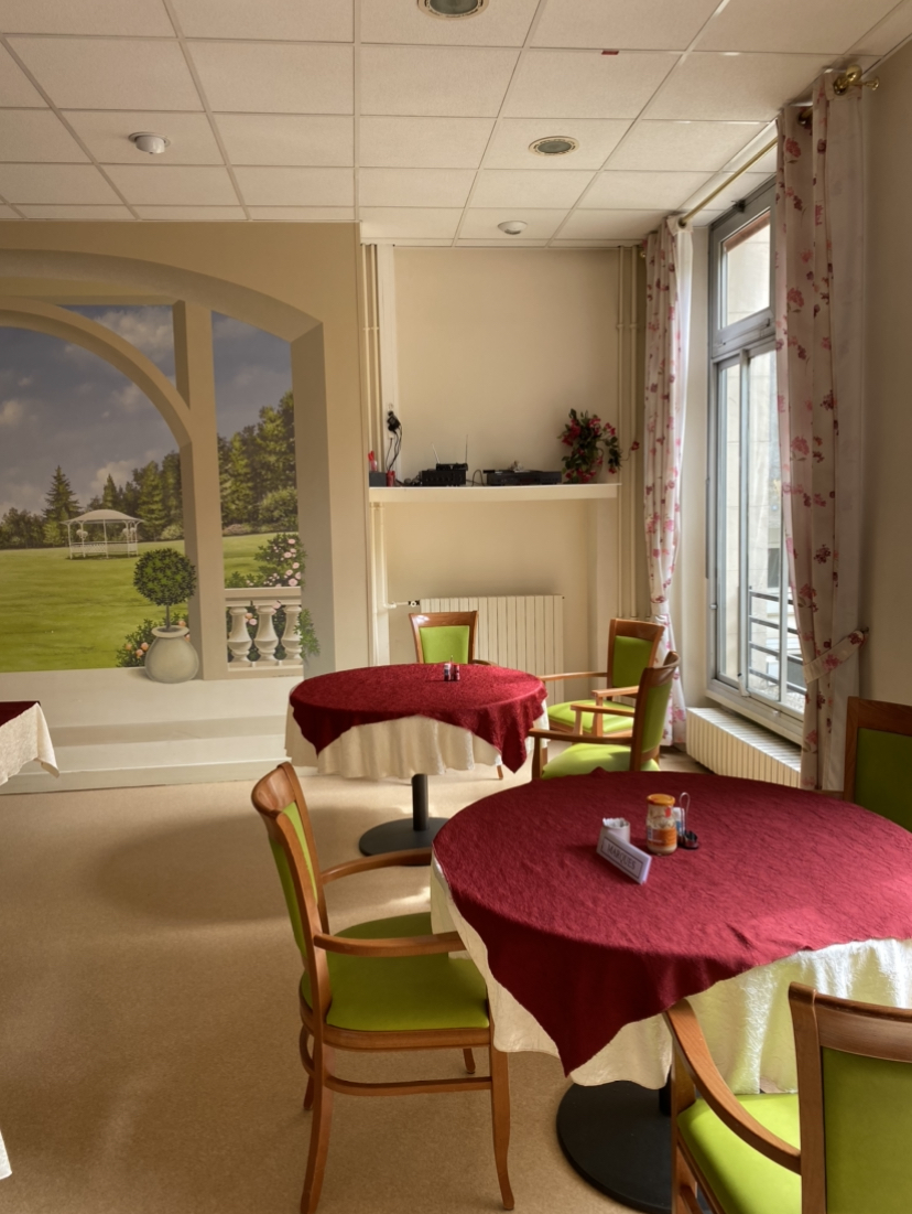 - La chambre, est équipée d’un lit médicalisé électrique, le résident est invité à la personnaliser par l’apport de meubles et objets personnels afin de recréer un cadre de vie familier. L’entretien de la chambre est assuré par le personnel de service ainsi que le linge qui doit être impérativement marqué à l’aide de noms tissés. En cas de besoin, un service de repas en chambre est prévu.